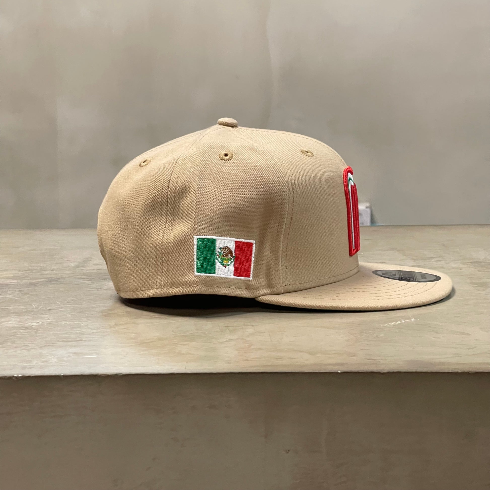 - Visera camel, coronilla y botón superior.